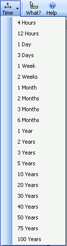 Normal procedures can be used to set the axis scale and zoom in or out (see Using the Graph Control) or you can easily set the time range using the Graph menu to toolbar item to one of several standard values: