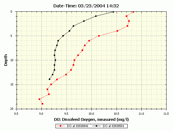 Depth profiles display data from a selected station and PCode versus depth at a selected time. WRDB data tables store the sample depth, however BMD files do not, so they cannot be used to display Depth profile graphs: