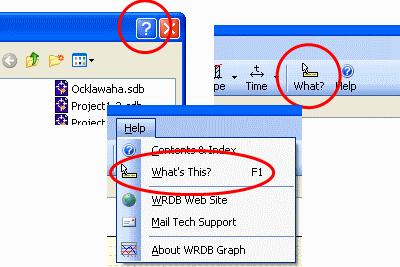 This help file is augmented by a complete context-sensitive help system. You can access this by clicking on the (?) icon in the title bar of all dialog boxes, the What? toolbar item on the main form, or the What's This? menu item on the Help menu, and then clicking on the item of interest. Alternatively, press the F1 key while positioned on the field or control of interest in the form: