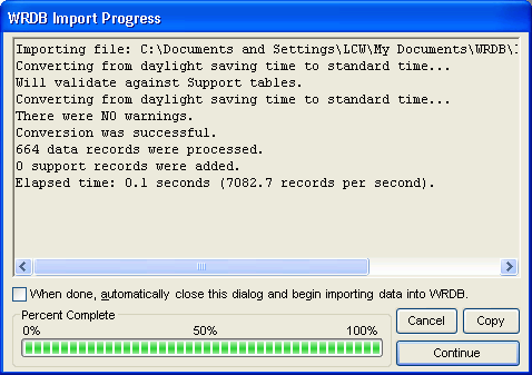Auto-Import Checkbox: Sometimes import operations can take several minutes or even hours; you can check this box if you want the Working table update operation to automatically continue after the import is complete (there will be a 10 second pause to give you a chance to change your mind).
