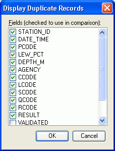 Display Duplicates: this is similar to Delete Duplicates except the duplicate records are merely displayed (not deleted). You have the option of selecting which fields to compare when determining duplicates: