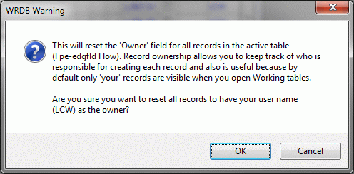 If you wish to "take ownership" of all records in a Working table, you could do so with Change Selected Records, but it is even easier to use Edit | Reset Ownership of All Records. You will be warned with this message: